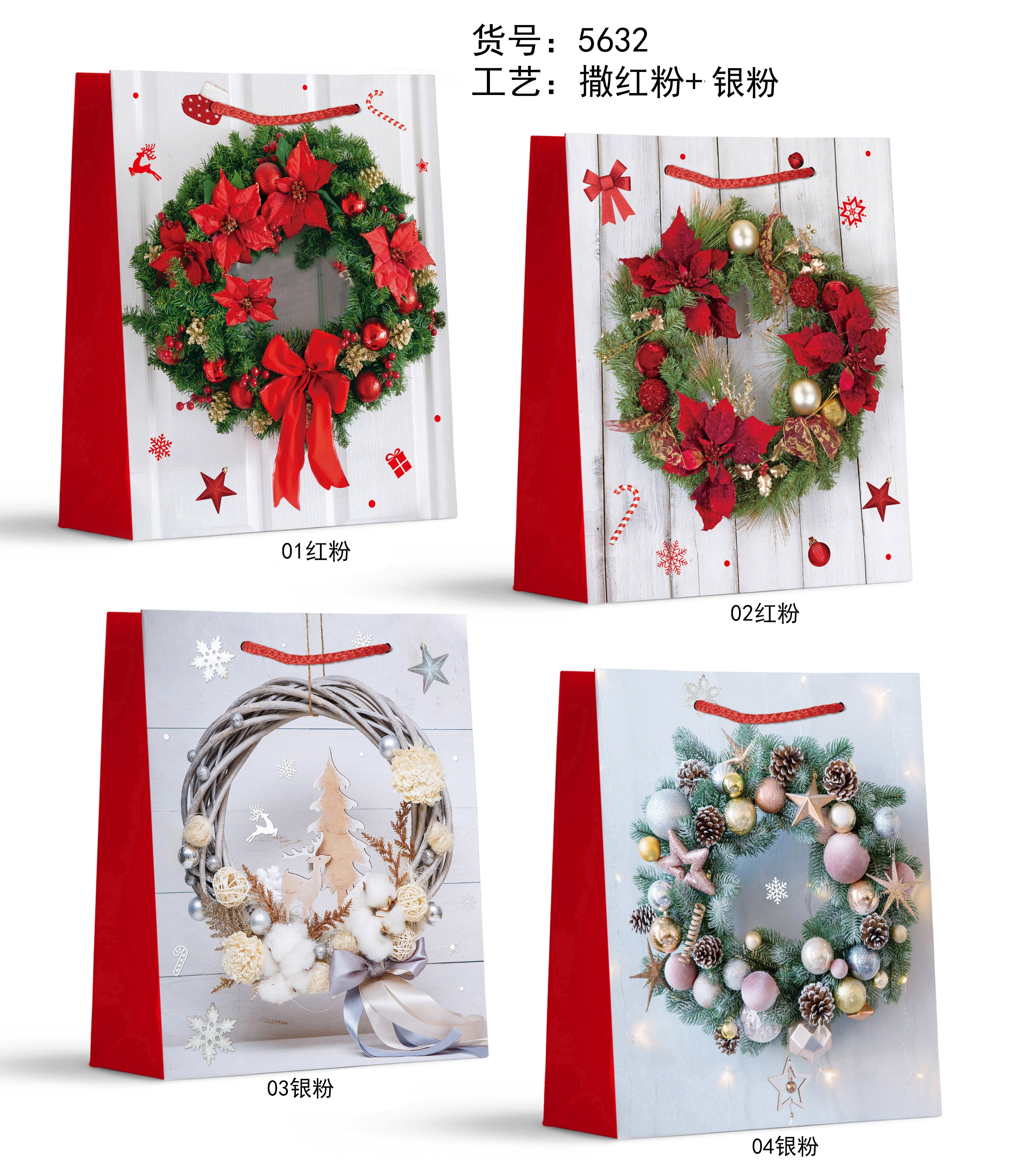 Medium Christmas Giftbag. Wreath Design. Size: 18*24*8.5cm